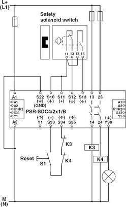 Circuit diagram Two-channel emergency stop monitoring