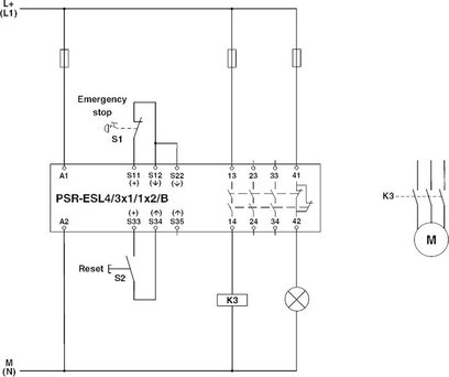 Circuit diagram Two-channel emergency stop monitoring