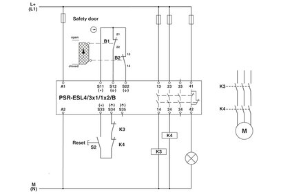 Circuit diagram Single-channel safety door monitoring